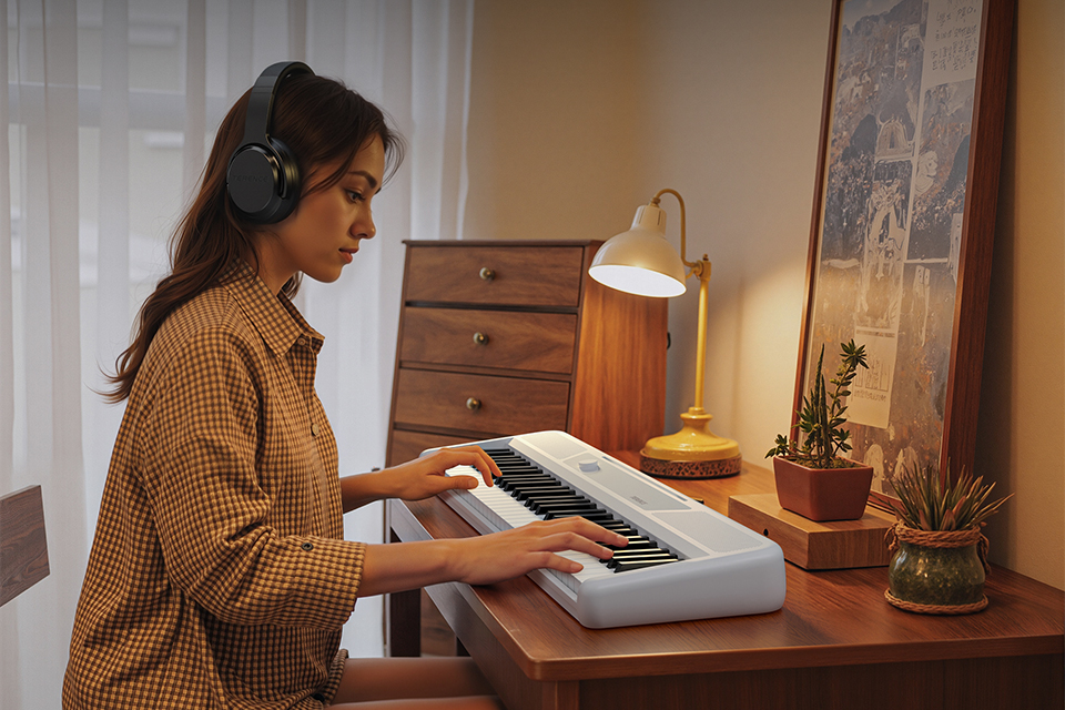 全く新しい構造デザインにより、工芸と美学に新たな突破がもたらされ、北欧のミニマリストデザインの理念が取り入れられています。高度な楽器製作技術と組み合わせることで、楽器本体はより薄く小型になり、持ち運びや収納が便利になり、いつでもどこでも自由に演奏できます。屋外や旅行時にはモバイルバッテリーでの電源供給にも対応しています。 |